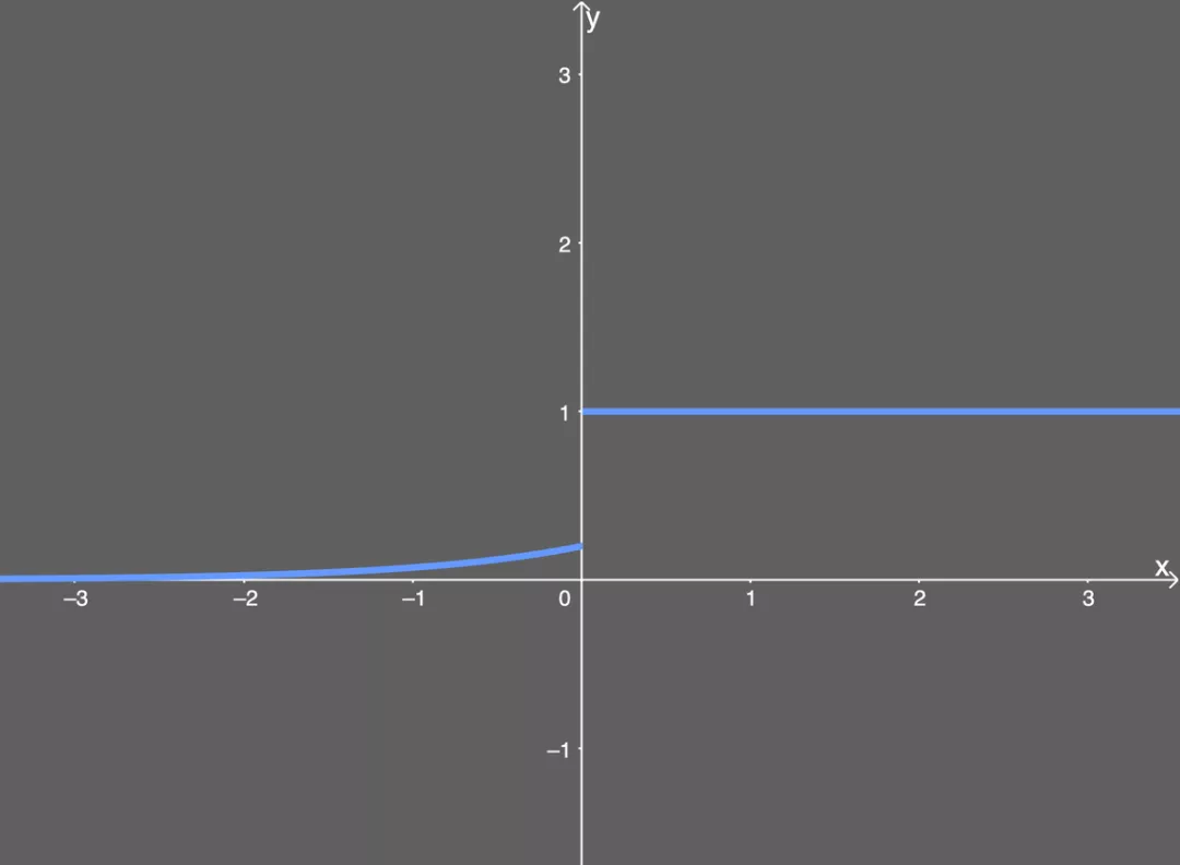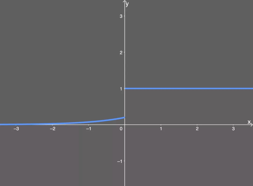 看起来很简单。如果输入 x 大于 0,则 y 值输出为 1;如果输入 x 小于或等于 0,则输出是 ELU 函数(未微分)加上 α 值。