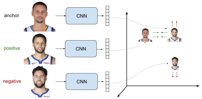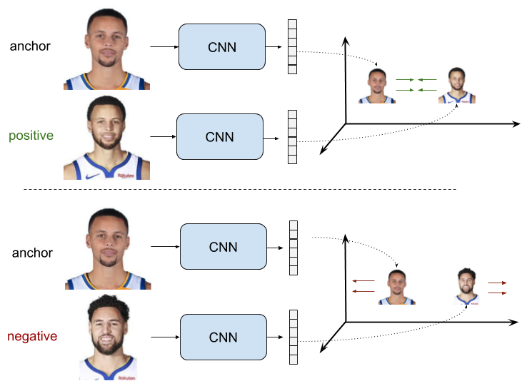 首先,从这两张(或者三张,见下文)输入数据中提取出特征,并且得到其各自的Embedding;