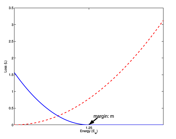 现在,我们的目标就是学习出一个特征表征,这个表征使得正样本对中的度量距离尽可能的小,而在负样本对中,这个距离应该要大于一个人为设定的超参数——阈值m。